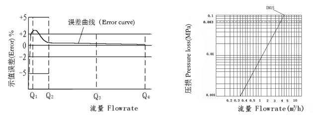 流量誤差曲線 FLOW-ERROR CURVE 壓力損失曲線 PRESSURE LOSS CURVE