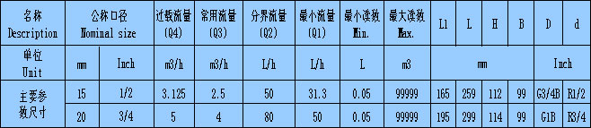 公稱口徑15mm和20mm: ≤2L/h